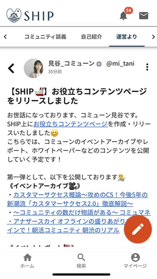 SHIPは、Commmune User Community "SHIP" を快適にご利用いただくためのアプリです。