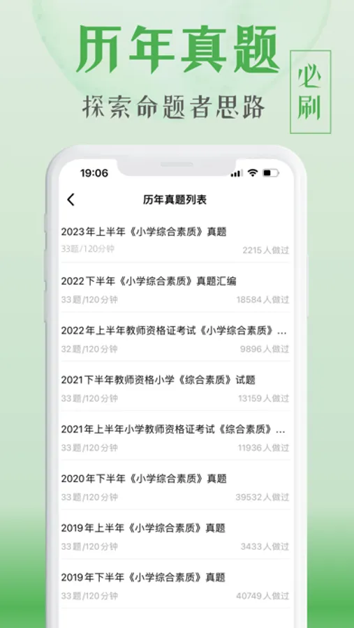 在这里你能获取历年全科考试真题,足不出户利用各种碎片时间完成刷题,收藏错题,高效学习...