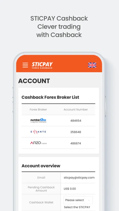Select a broker and once you start trading your cashback will be credited directly to your STICPAY account based on the trading volume.
