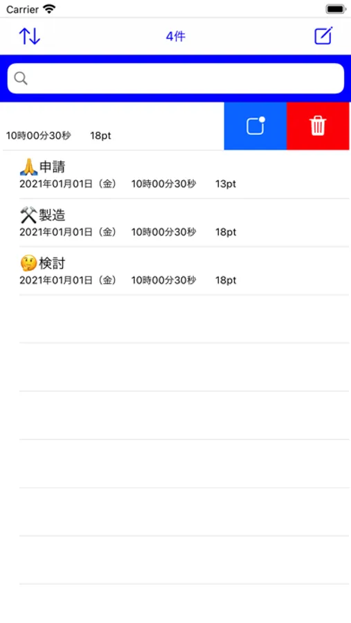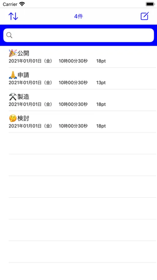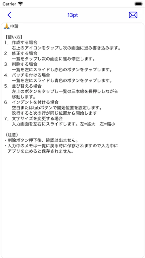 ・入力中のメモは一覧に戻る時に保存されますので入力中にアプリを