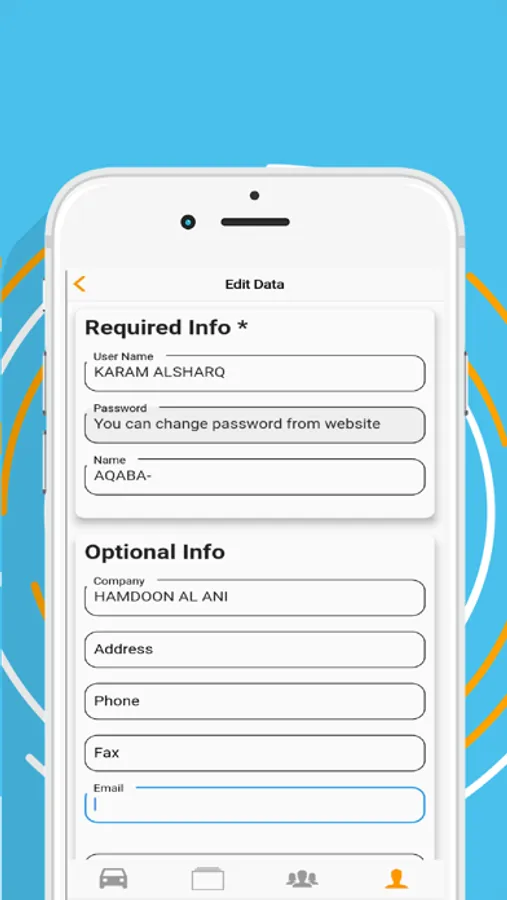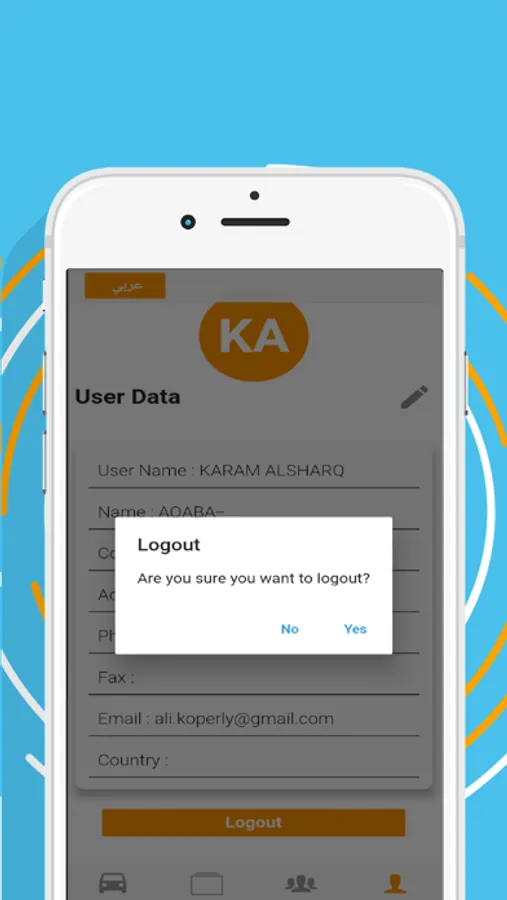 Karm Al-Sharq Company application, it's designed especially for the company customer, customers can log in through the app and access their vehicles and containers and stay up to date with shipment status through the app, addition to that customers can share vehicles with other users using the app.