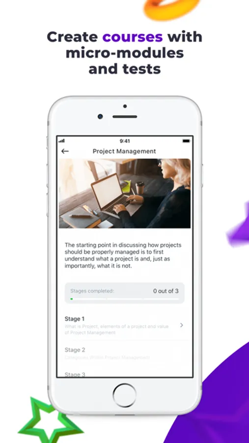 • Implement microlearning strategy: short modules with videos, presentations, and tests combined into courses.