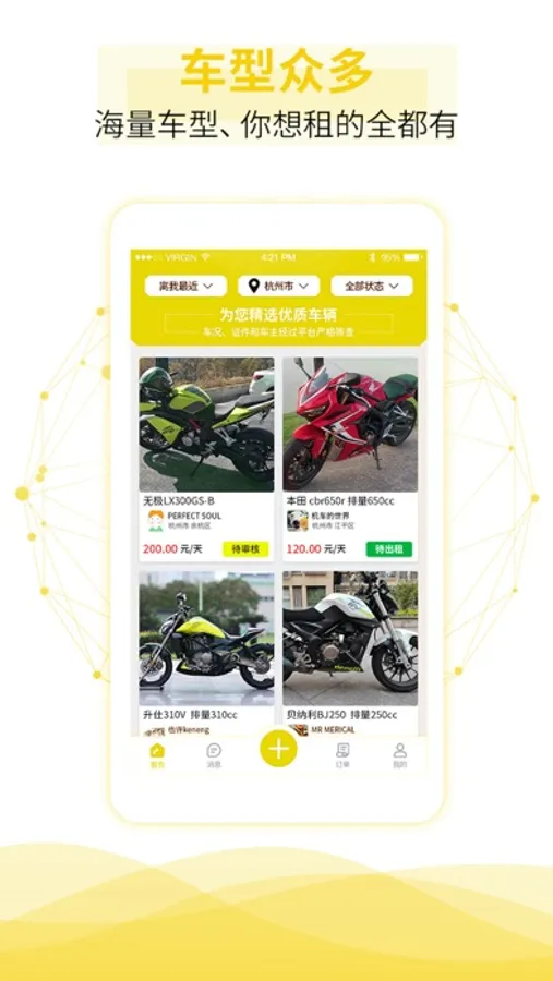 使用该APP,租客可以轻松找到自己喜欢的摩托去租赁,车主可以把自己暂时不用的摩托放在平台上。
