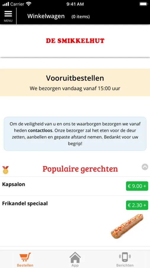 Download onze app en blijf op de hoogte van het laatste nieuws en de nieuwste acties, aanbiedingen en kortingen. Via onze app kunt u onze menukaart bekijken en direct vanaf uw telefoon uw bestelling plaatsen. U kunt via de app ook met iDEAL betalen!