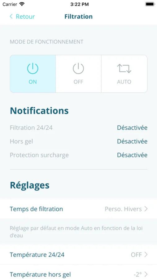 - Notifications (température de l’eau / surcharge électrique de la pompe)
