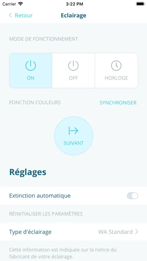 - Configuration de l’horloge (heure début et fin / hebdomadaire)
