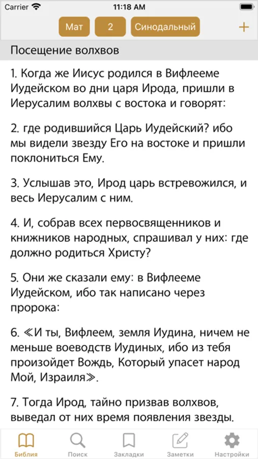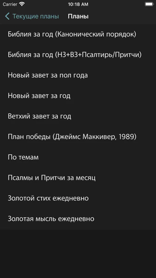 . Предусмотрены 10 планов чтения, с возможностью ежедневного уведомления о сегодняшнем плане
