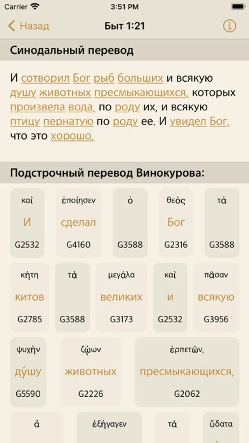 . Для более глубокого изучения Библии предусмотрен удобный режим - Работа с номерами Стронга. Он позволяет изучать оригинальный Греческий/Еврейский текст и сравнивать его с переводом.
