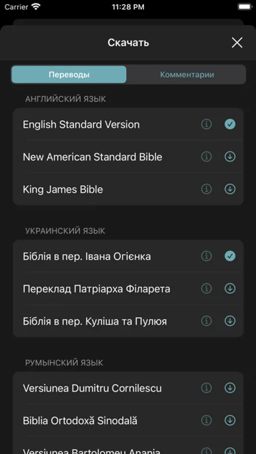 . В любой момент можно скачать дополнительные переводы на Английском, Украинском и Румынском языках.