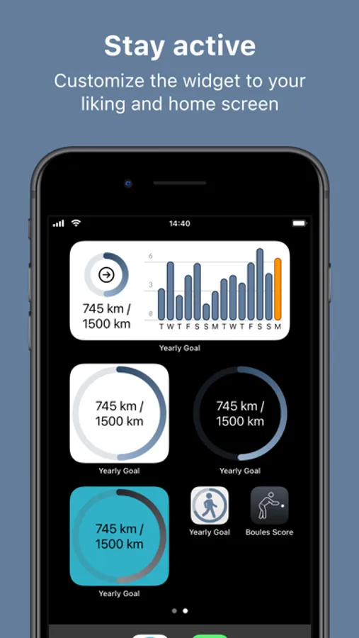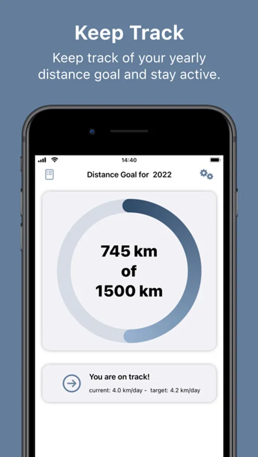 Set your distance goal for the year and keep track. Select which of the activities you want to track from Apple Health and you are set. You can even use the Apple Watch app to keep track while you are on the go.