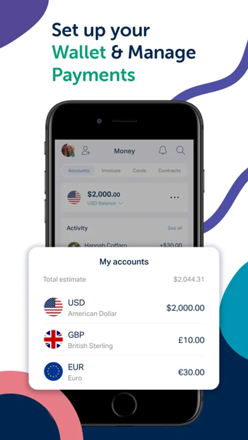 - Receive payments, transfer money, or manage invoices & savings