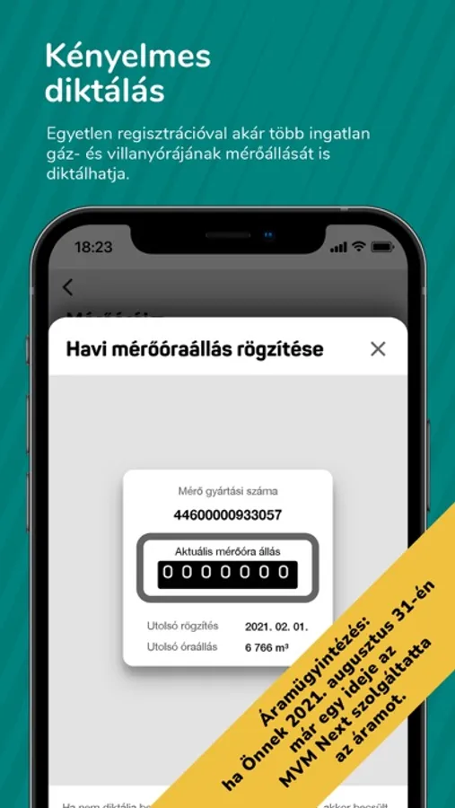 - Mérőállást diktálhat, és lekérdezheti korábbi mérőállásadatait.