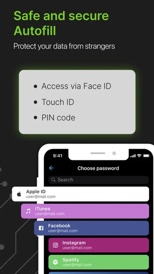 • Autofill your passwords quickly and save you time. (Available on iOS 12)