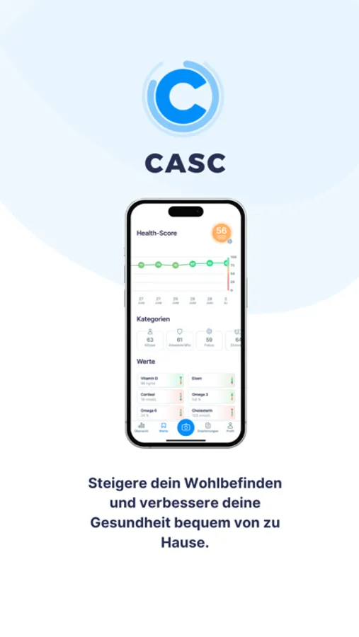 Um deine Werte zu verbessern, musst du deine Werte kennen und verstehen. Die CASC App zeigt dir, was die einzelnen Werte für dich und deinen Körper bedeuten.