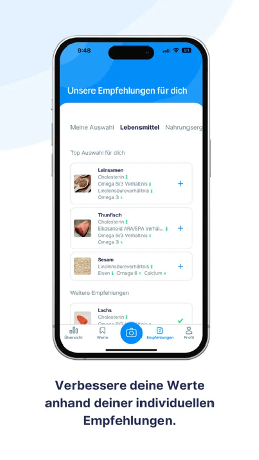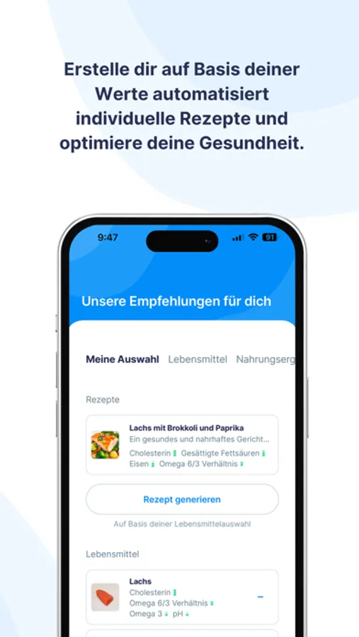 Empfehlen dir Lebensmittel, die zu dir passen, damit du dich gesünder und besser fühlst.