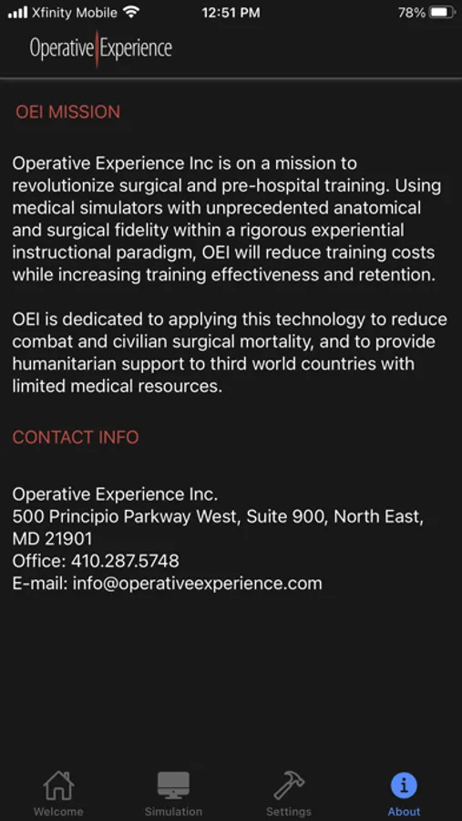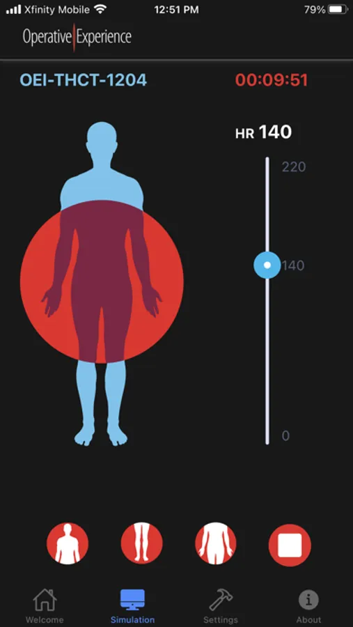 The Operative Experience OEI THCT app provides control of the Tactical Hemorrhage Control Trainer Simulator (Male and Female versions)