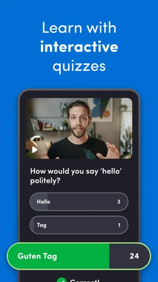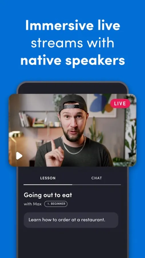 -Watch live and effective streams that are tailored to your level! It doesn’t matter if you are a beginner or have advanced knowledge, we offer interactive streams to improve your level in all the available languages in the app!