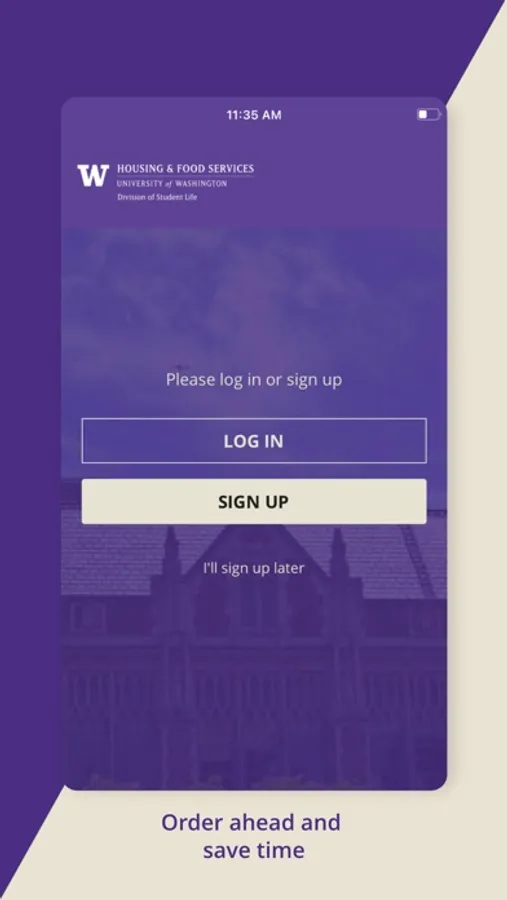 Dub Grub is an ordering app specific to the University of Washington community and its on-campus residents. Select a dining location and choose meals through the menus in the app. You can pay with your dining account or Husky Card. Pick up your order at the location right when you get there to skip the lines and stay distanced.