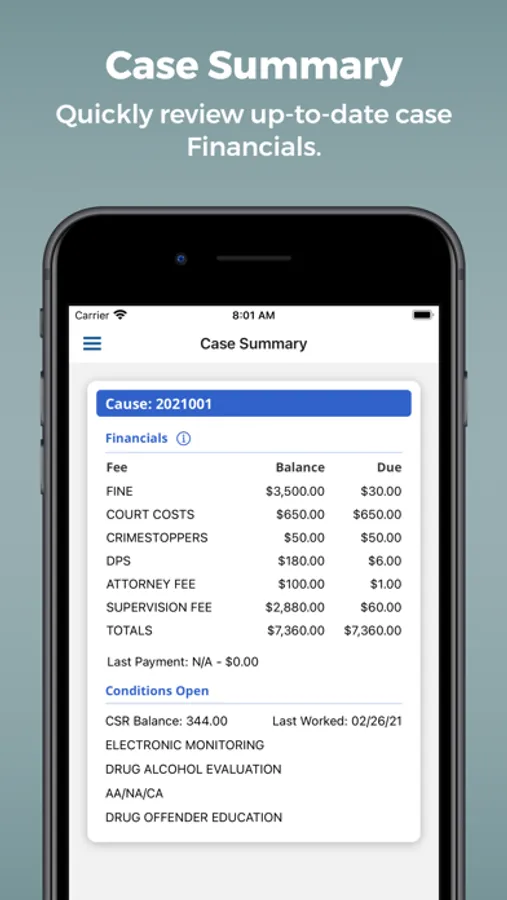 Case Connect Mobile allows clients under pretrial and community supervision to access their case information and utilize a series of features through the app based on the features set by their officer.