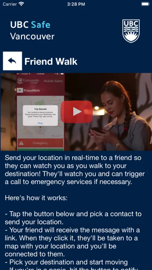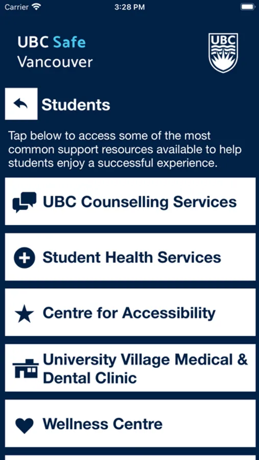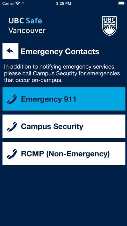 UBC Safe - Vancouver is the official safety app of University of British Columbia - Vancouver. It is the only app that integrates with UBC Vancouver's safety and security systems. Campus Security has worked to develop a unique app that provides students, faculty and staff with added safety on the UBC Vancouver campus. The app will send you important safety alerts and provide instant access to campus safety resources.