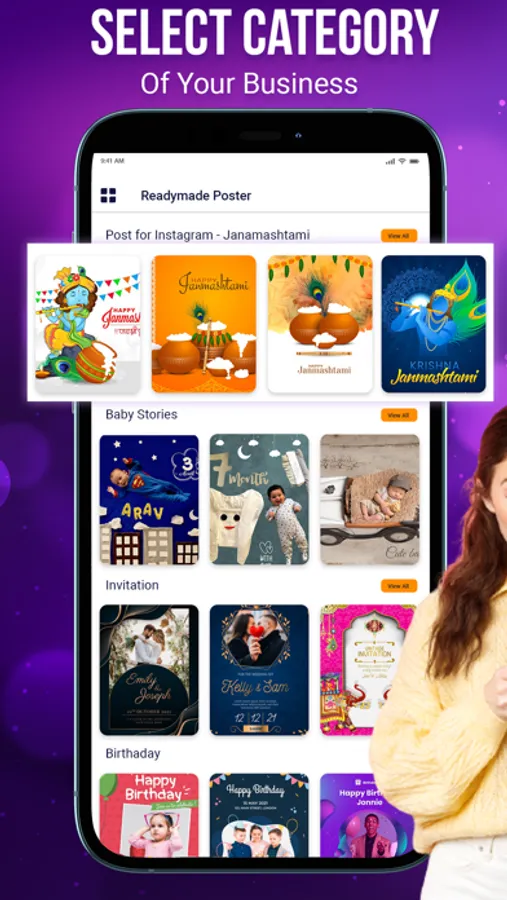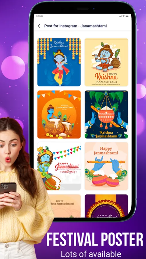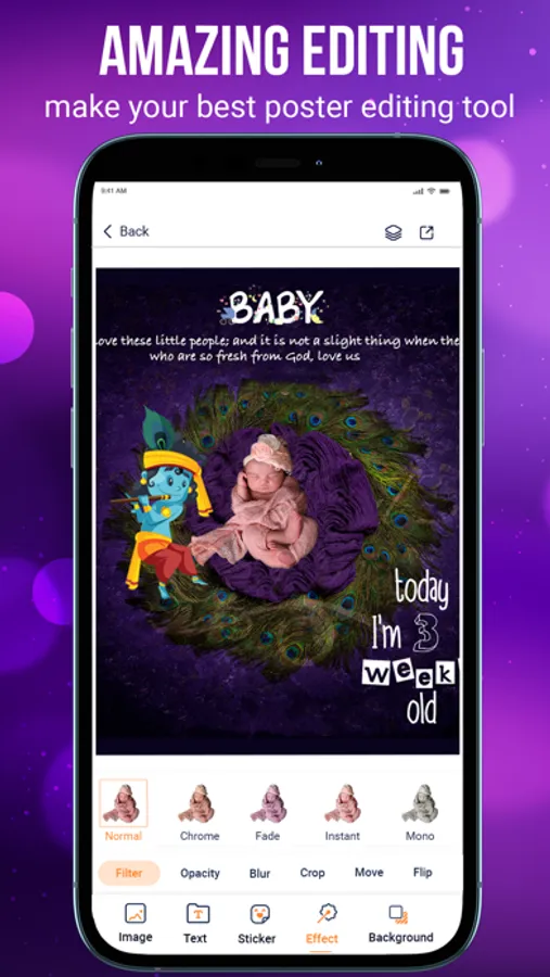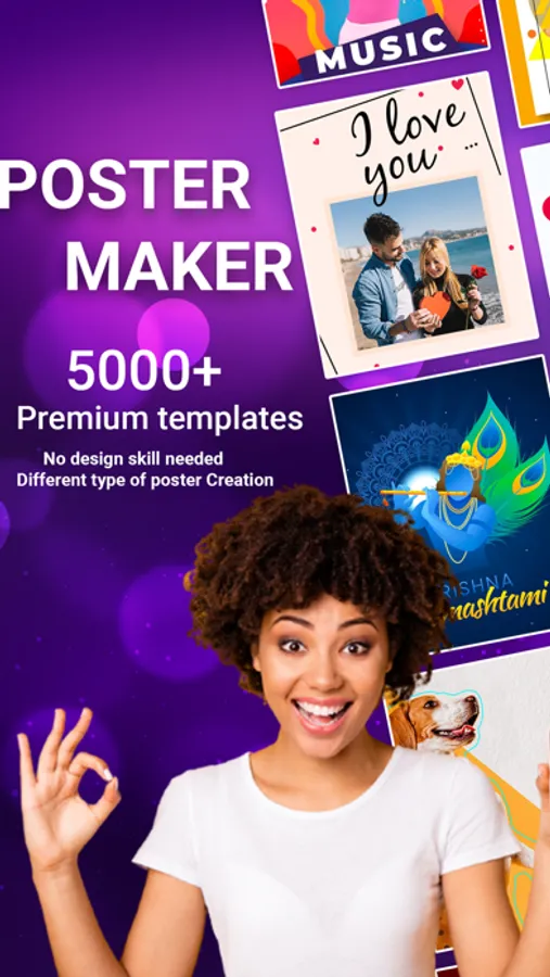 Poster Maker is an easy to use app, just select the background you like in the ratio as per your need and add your text with poster design fonts, add wonderful stickers (specially picked for poster making), add your pictures from gallery and create perfect poster every time.
