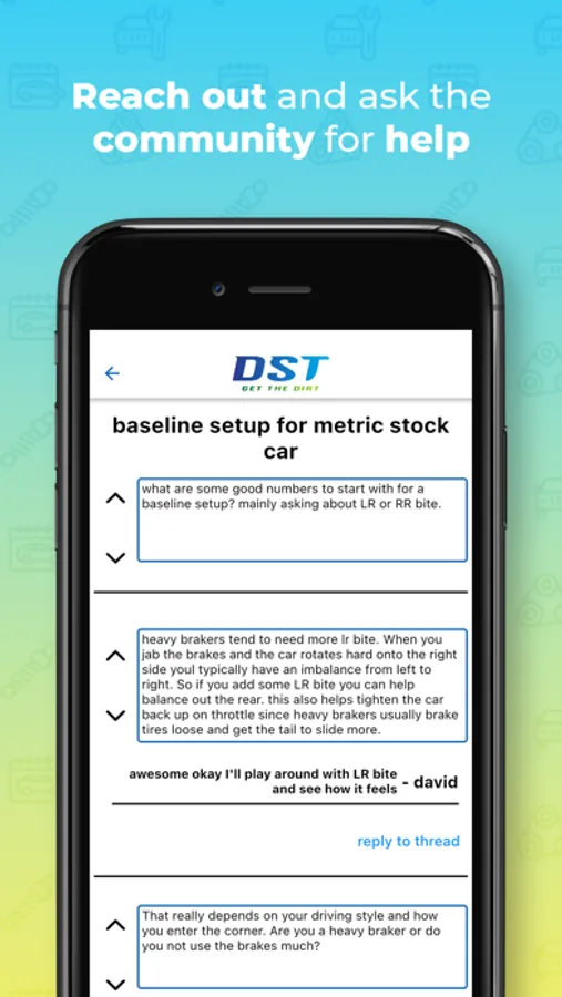 The Dirt Slingin Tech mobile app is aimed at helping dirt track racers spend less time worrying about where their setups are and more time wrenching on their cars. We also aim to help drivers tune their setups to perfection. Our app promotes the following features: