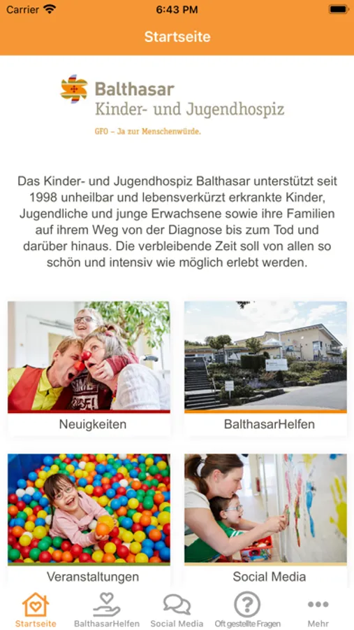 In dieser App erfahren Sie alle Neuigkeiten über das Kinder- und Jugendhospiz Balthasar. Sie können sich über das Haus und die Arbeit informieren, sich für Veranstaltungen der Balthasar Akademie anmelden und mit uns in Kontakt treten.