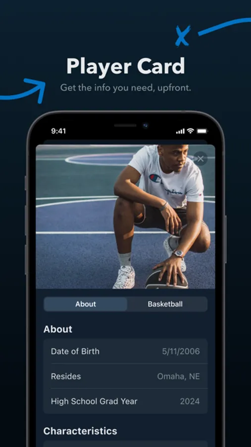 Player Card: The Player Card is similar to an athlete’s resume. It describes the athlete by their characteristics, skills, and experiences preferred by recruiters during the recruitment process. Athletes can build their profile to include these specific characteristics that recruiters can search. Some essential characteristics that all athletes will automatically have after signing up are their sport, position, height, gender, grade, age, school, graduation year, city, state, and zip code. However, an athlete can build their profile by adding optional characteristics like their GPA and the sports organizations that they are associated with.