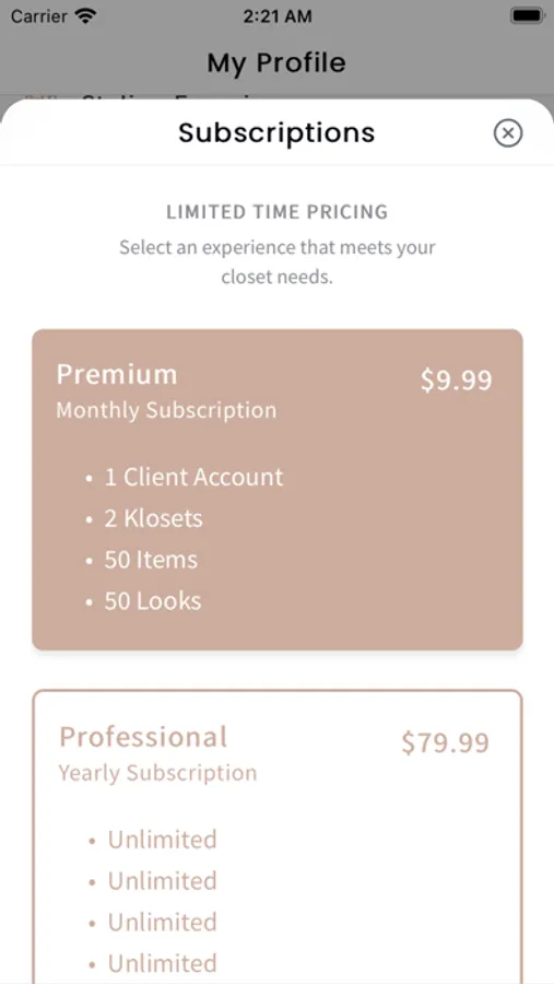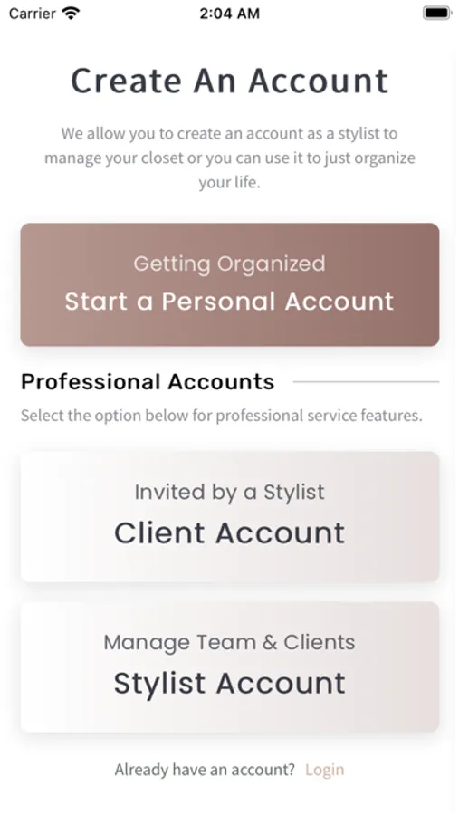 Wardrobe styling app to outfit clients and keep track of their closet.