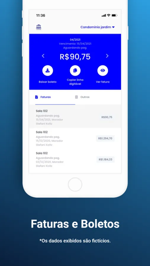 Realize diversas ações de maneira rápida e ágil, visualize suas faturas, reserve áreas comuns, entre diversas outras funcionalidades.