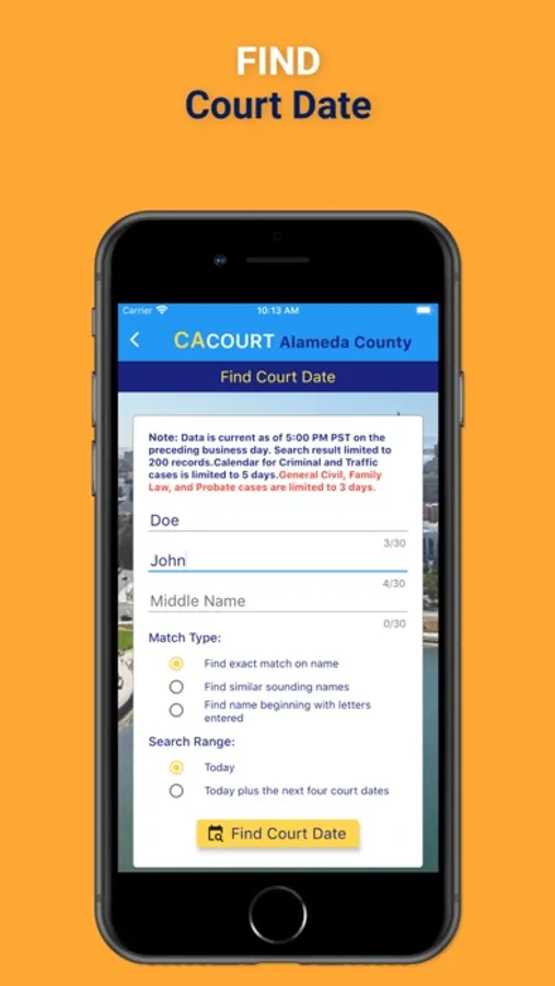 4. Find court date from general civil, criminal, traffic, family law, and probate calendars