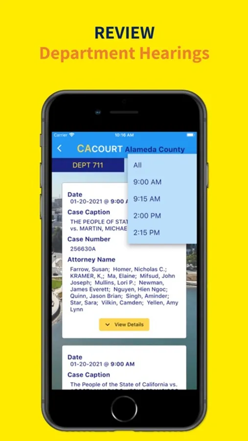 2. View daily criminal court calendar and see scheduled hearing