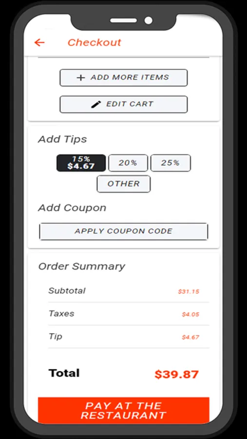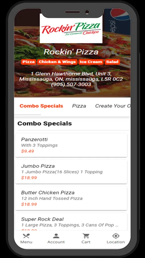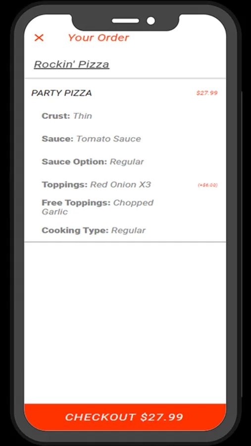 Food ordering app for the restaurant Rockin Pizza