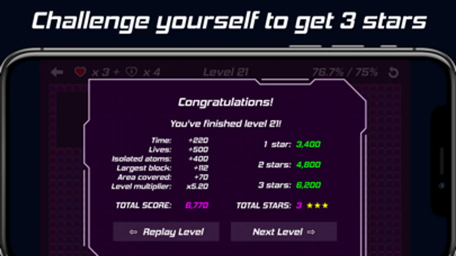 Depending on the total score, you can get up to 3 stars for each level. If you didn't manage to get 3 from the first try, you can always try again. :)