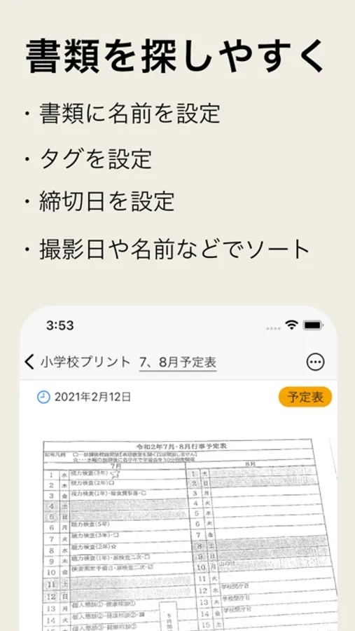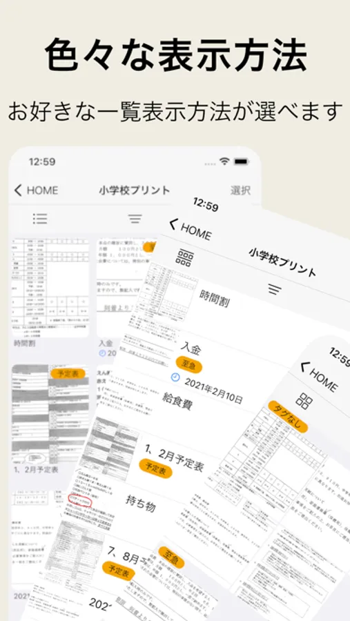学校からのプリントや、仕事の書類、レシピなど。もちろん書類以外にも普通の写真もフォルダ分けして整理できます。