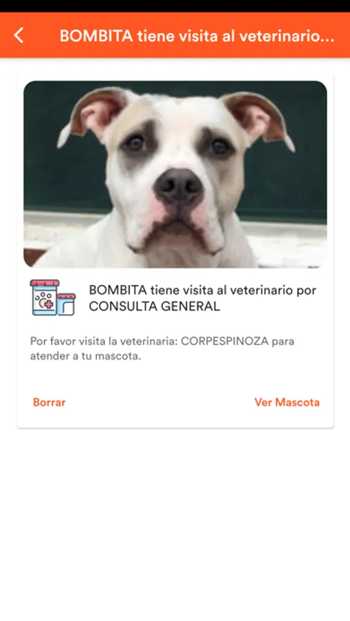 En esta App móvil se detallan datos como nombre, edad, especie, peso, entre otros y se registran sus vacunas, desparasitaciones, consultas, peluquerías, facturas y recordatorios, toda la información ingresada por el médico Veterinario.