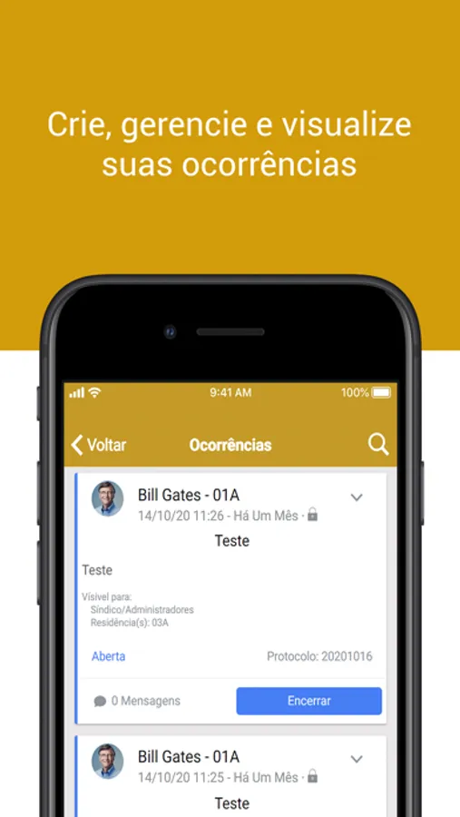 ◉ Ocorrência com notificações para o Síndico e/ou Supervisor