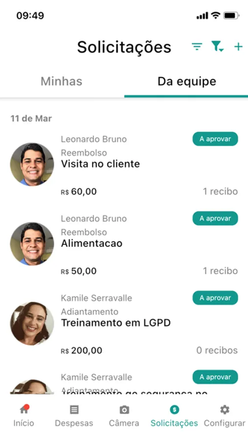 Em poucos toques, é possível cadastrar despesas, anexar recibos e solicitar reembolsos e adiantamentos. O gestor também consegue gerir as aprovações e faz a gestão de sua equipe remotamente.
