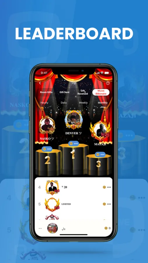 Upgrade to W Live Aristocracy King for the first-class experience you've never seen before. It offers monthly golds, a premium badge, special entrance effects, high-speed level up so your level increases faster than the others. It also offers an exclusive name card to show your difference, an exclusive luxury car that catches everyone's attention and five more special privileges.