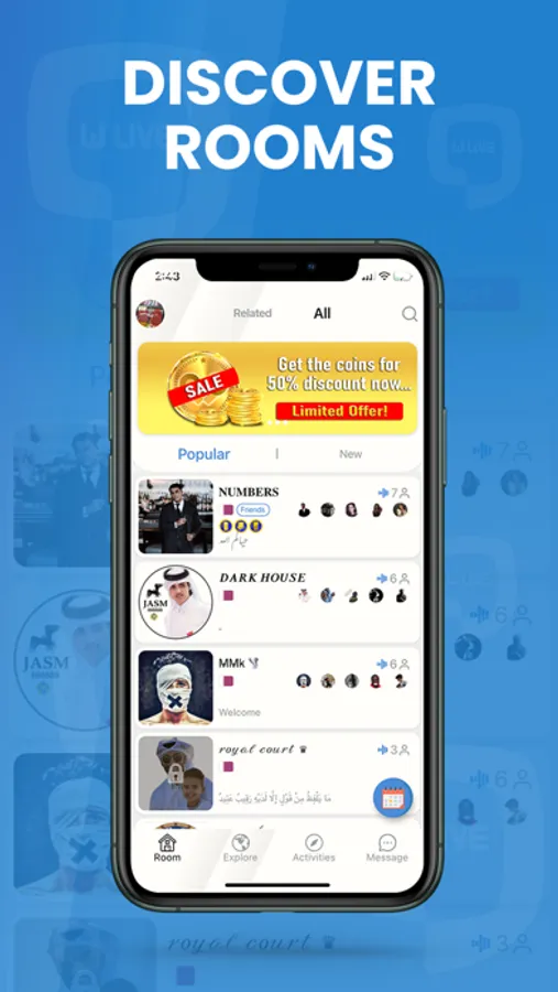 Choose group voice rooms from live rooms daily, filter rooms by Countries or Topics. 50+ Countries have already been covered, while tons of topics are available to choose from.