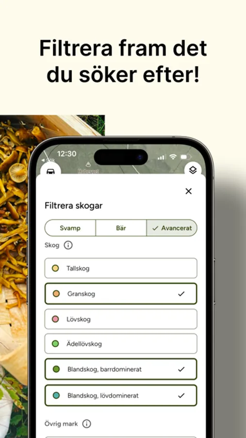 Vill du plocka svamp men inte vet vart den växer? Då är detta appen för dig. Letar du efter en gammal granskog? Nu kan du filtrera fram en!