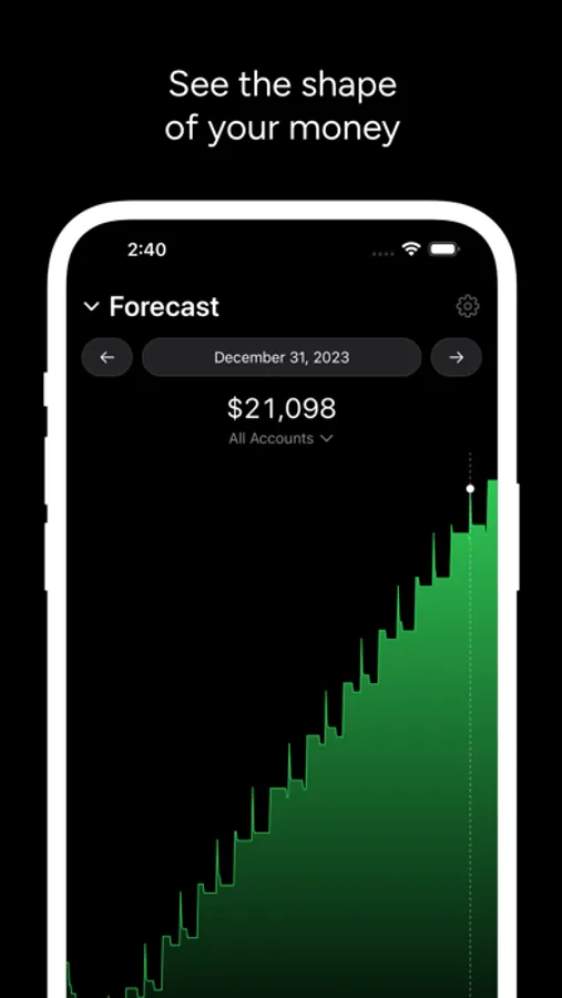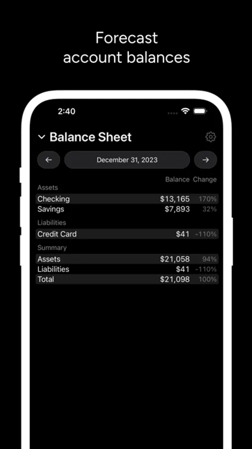 The app is designed to be simple and easy, taking just 5 minutes to set up... Just input your assets, liabilities, and recurring income, expenses and transfers, and Oolong will generate forward-looking balance sheets and income statements to give you a clear picture of how your money ebbs and flows.