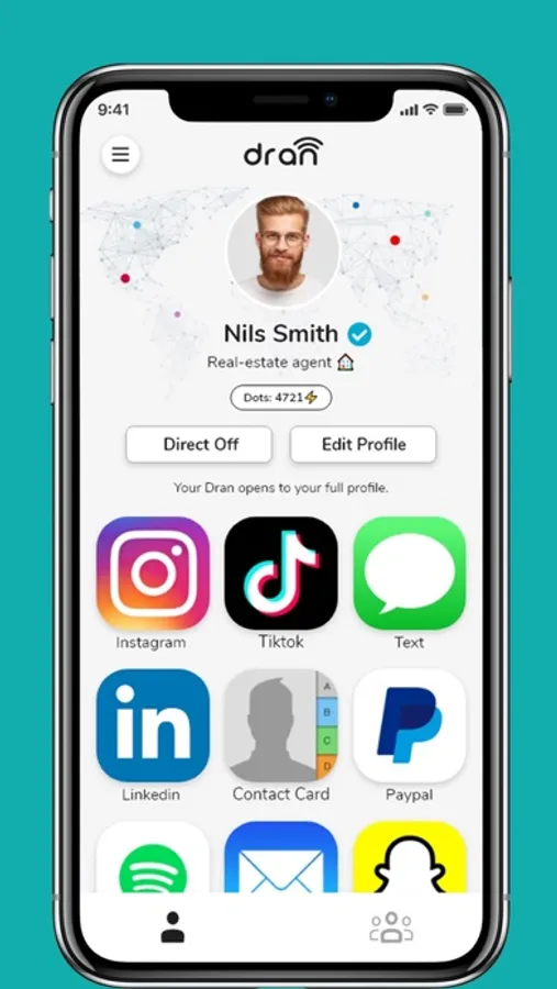 If you don't want to share your entire Dran profile, you can turn on Dran Direct to share your Snapchat, LinkedIn, Instagram, contact card, or any other link directly!