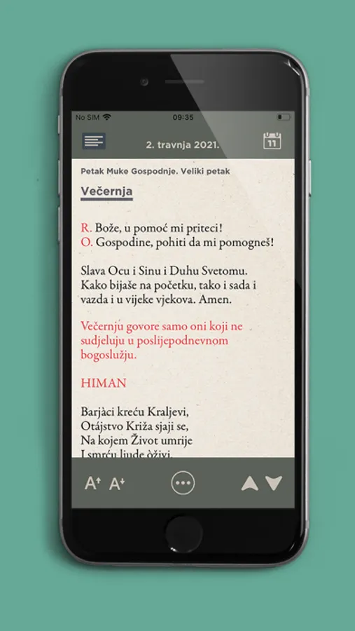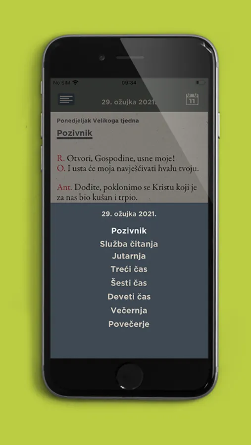 eČasoslov je aplikacija s pomoću koje možete moliti službenu liturgijsku molitvu Crkve bilo kada i bilo gdje na vašem uređaju.