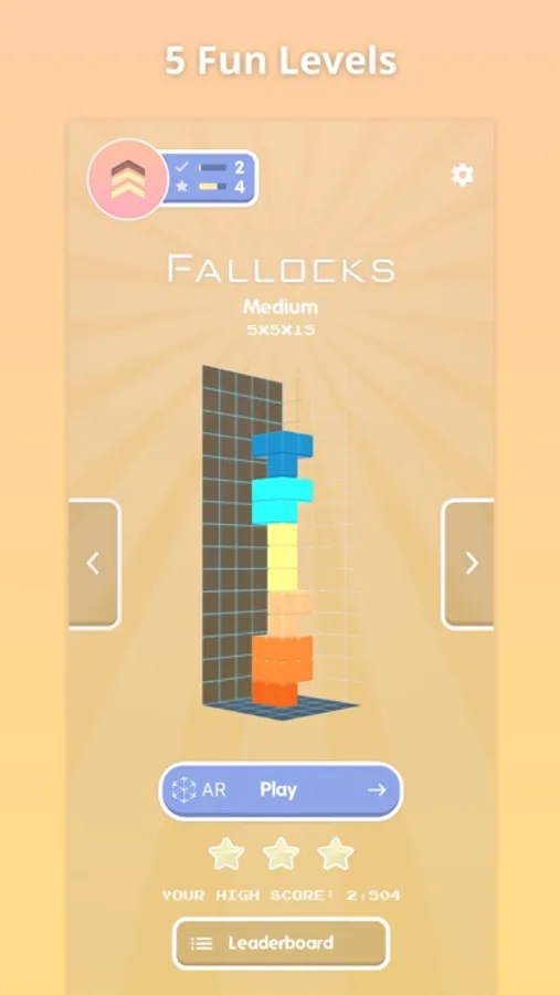 If you love Tetris, you're going to love Fallocks - the World's First Augmented Reality (AR) 3D Falling Blocks Game! Fallocks puts the 3D blocks right in your lap. Intuitive controls make moving and rotating blocks in 3D easy and fun. Levels start out leisurely, but each piece falls faster and faster. Before you know it, you'll be shouting, "Fallocks!"