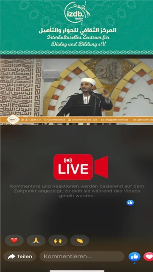 - Regelmäßige Live-Übertragung von Freitagsgebeten und Unterrichten aus dem Zentrum