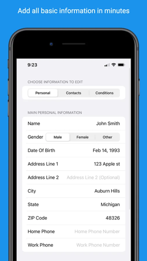 Medical ID is an app that allows that users to pre-fill important medical information and easily transfer it to healthcare organizations such as hospitals, clinics, urgent care centers, and more.