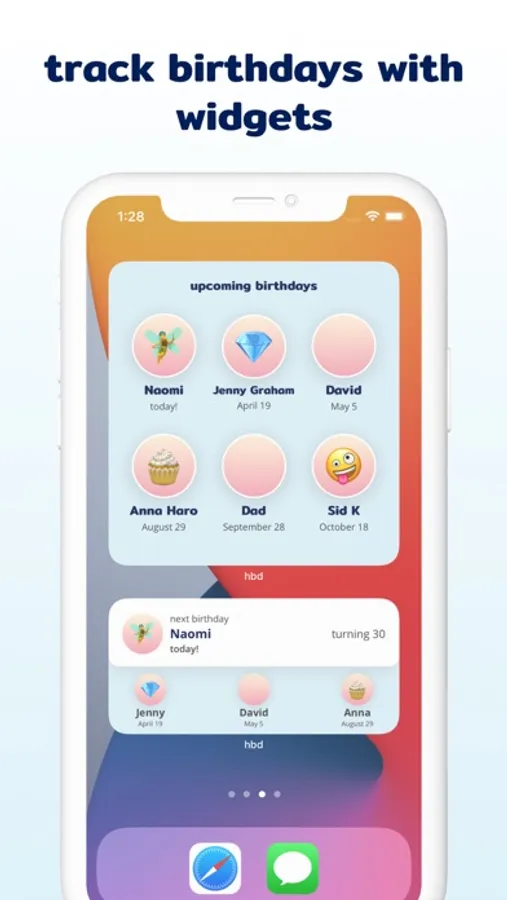 Add our widgets to keep track of upcoming birthdays right from your home screen.