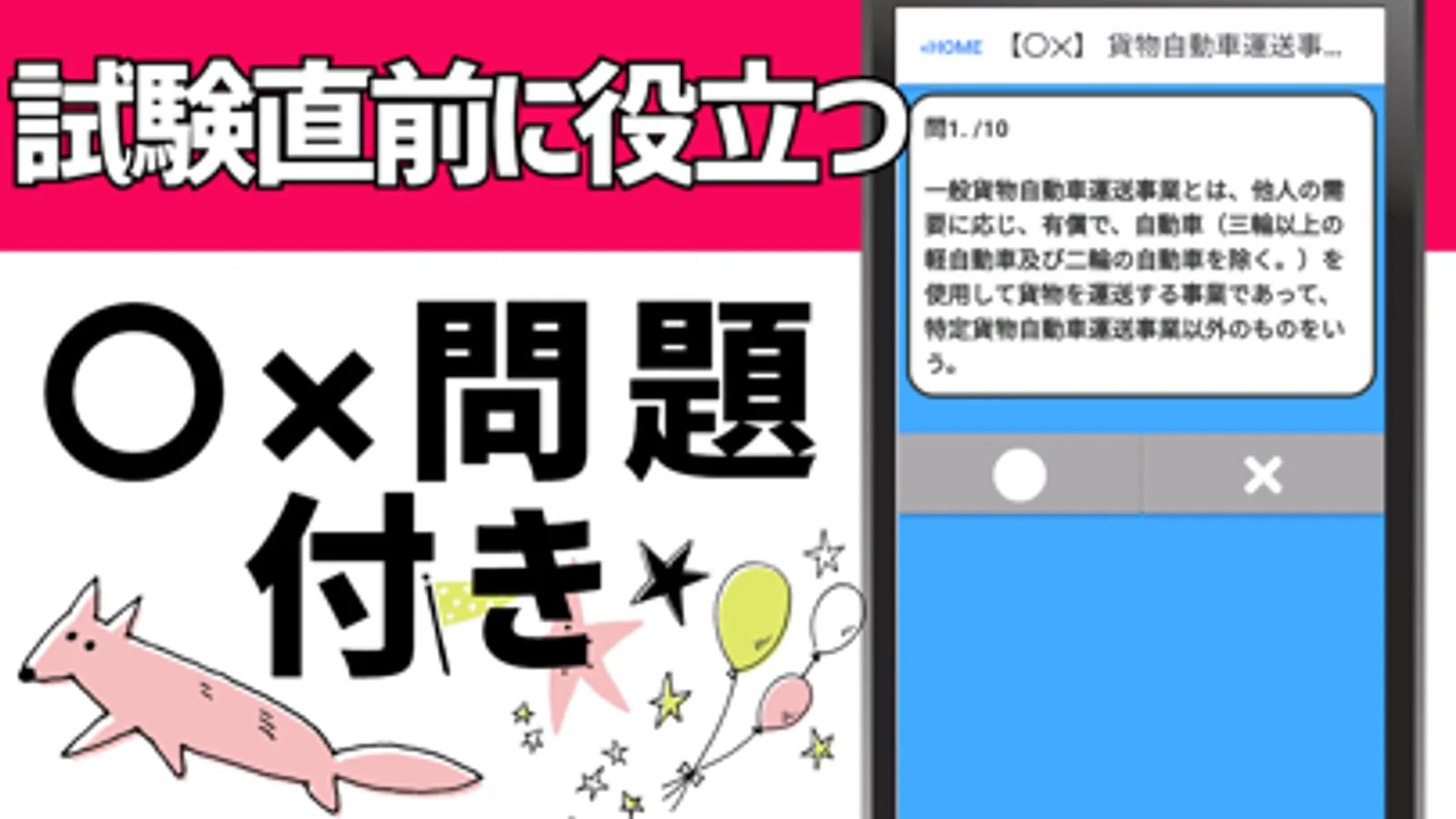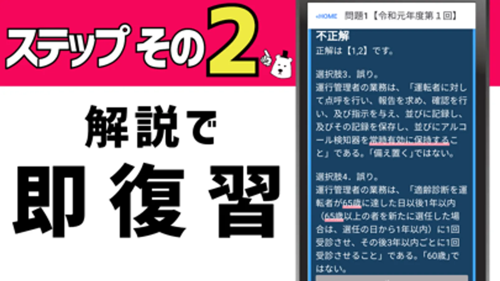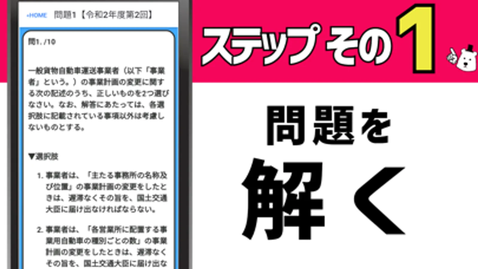 運行管理者(貨物)問題を隙間時間に解き、学習できるアプリケーションです。