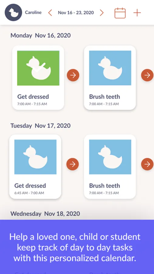 We designed this calendar for individuals who need visual support to understand activities in their day but for whom a typical calendar is too challenging. This app is meant to be used anywhere – it has everything you need easily accessible from within the app in case you need to adjust anything on the go.